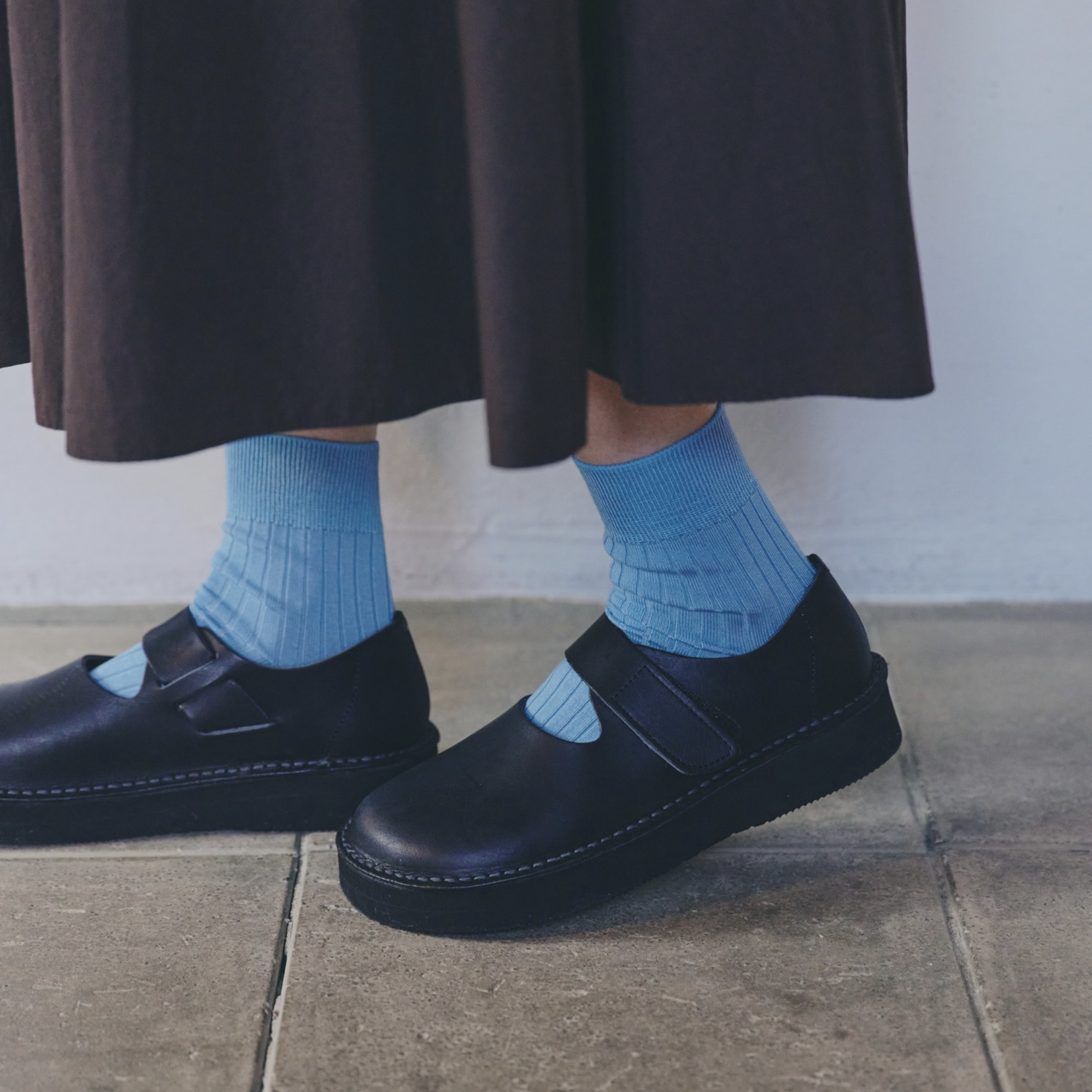 日本製 黑色 牛皮 厚底 魔鬼氈 女鞋