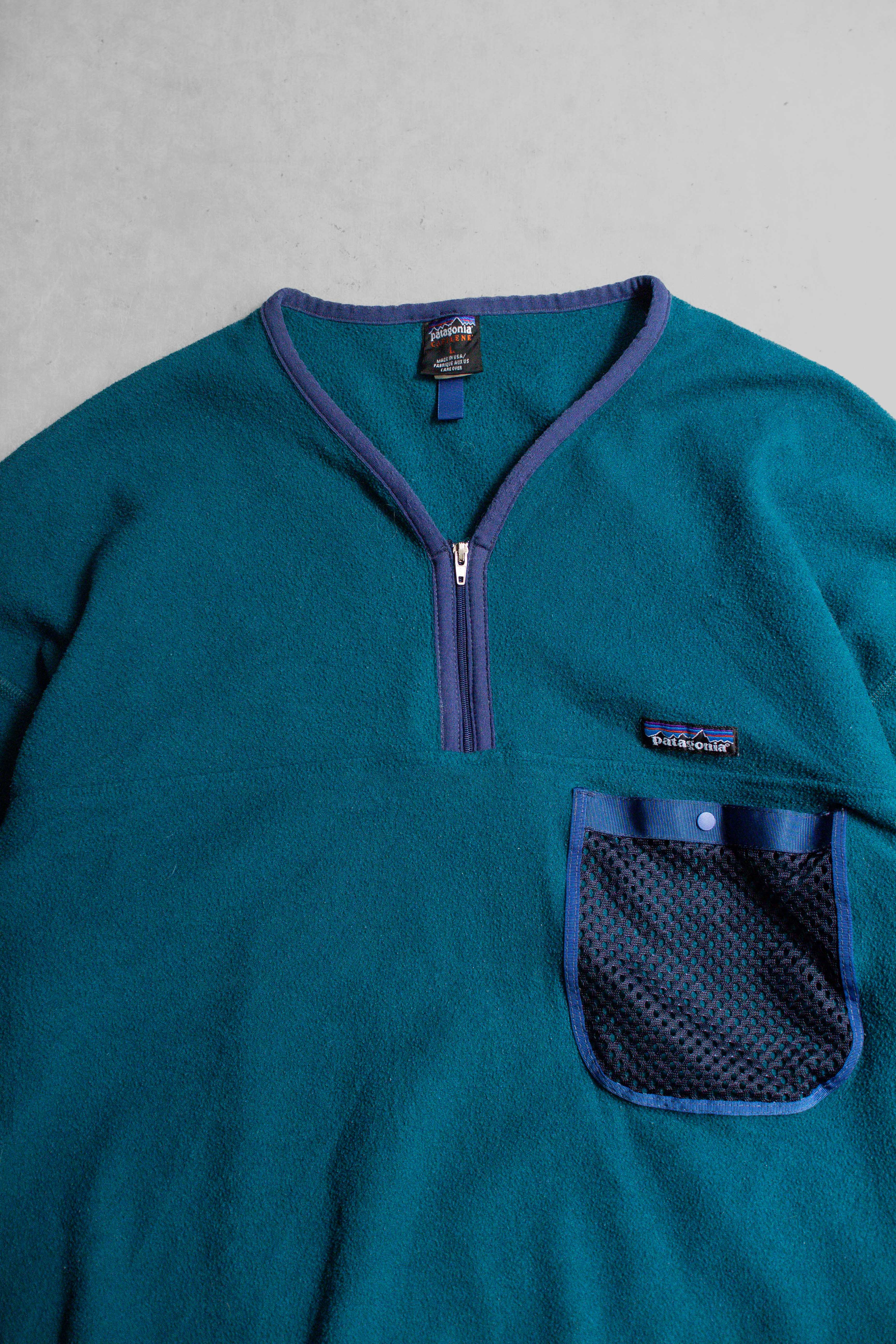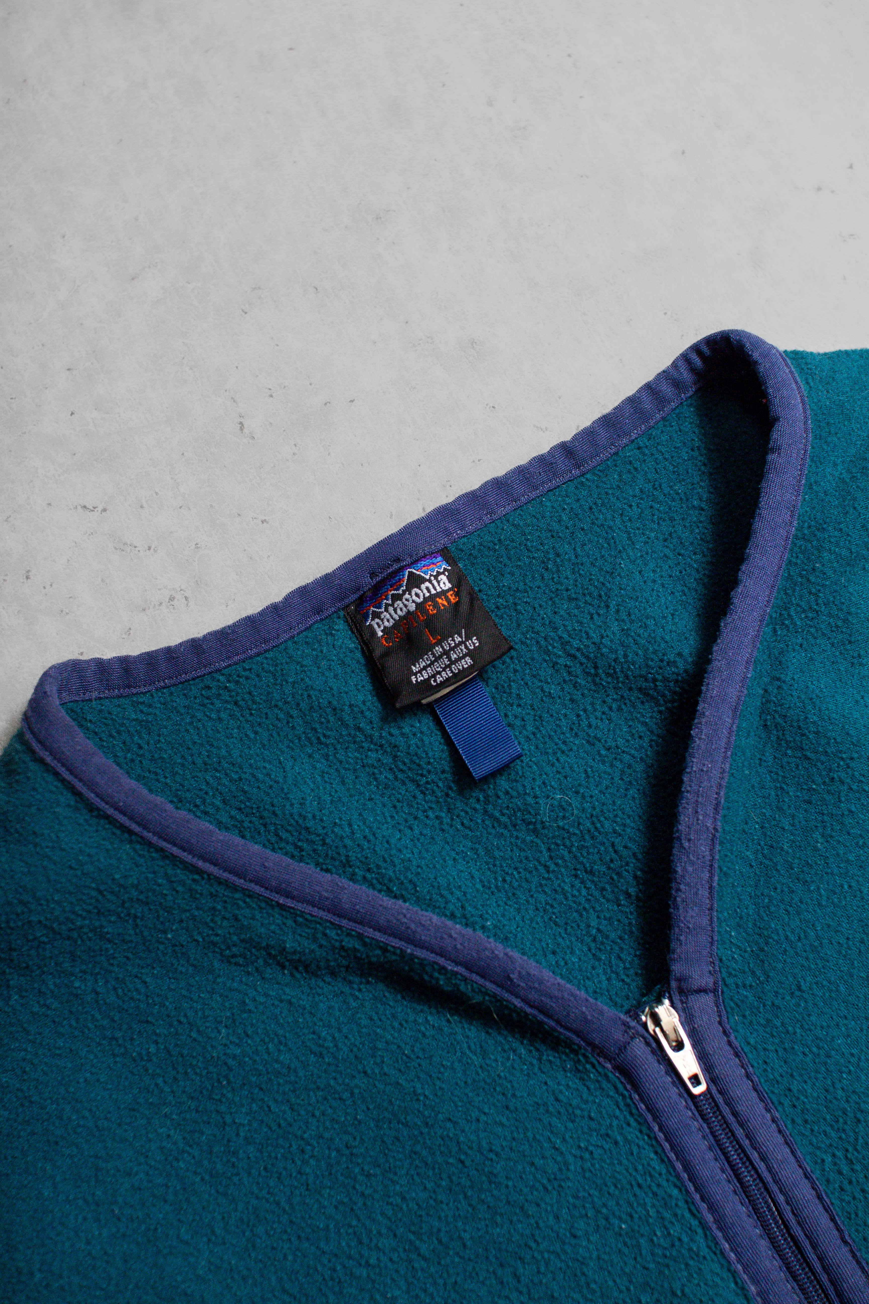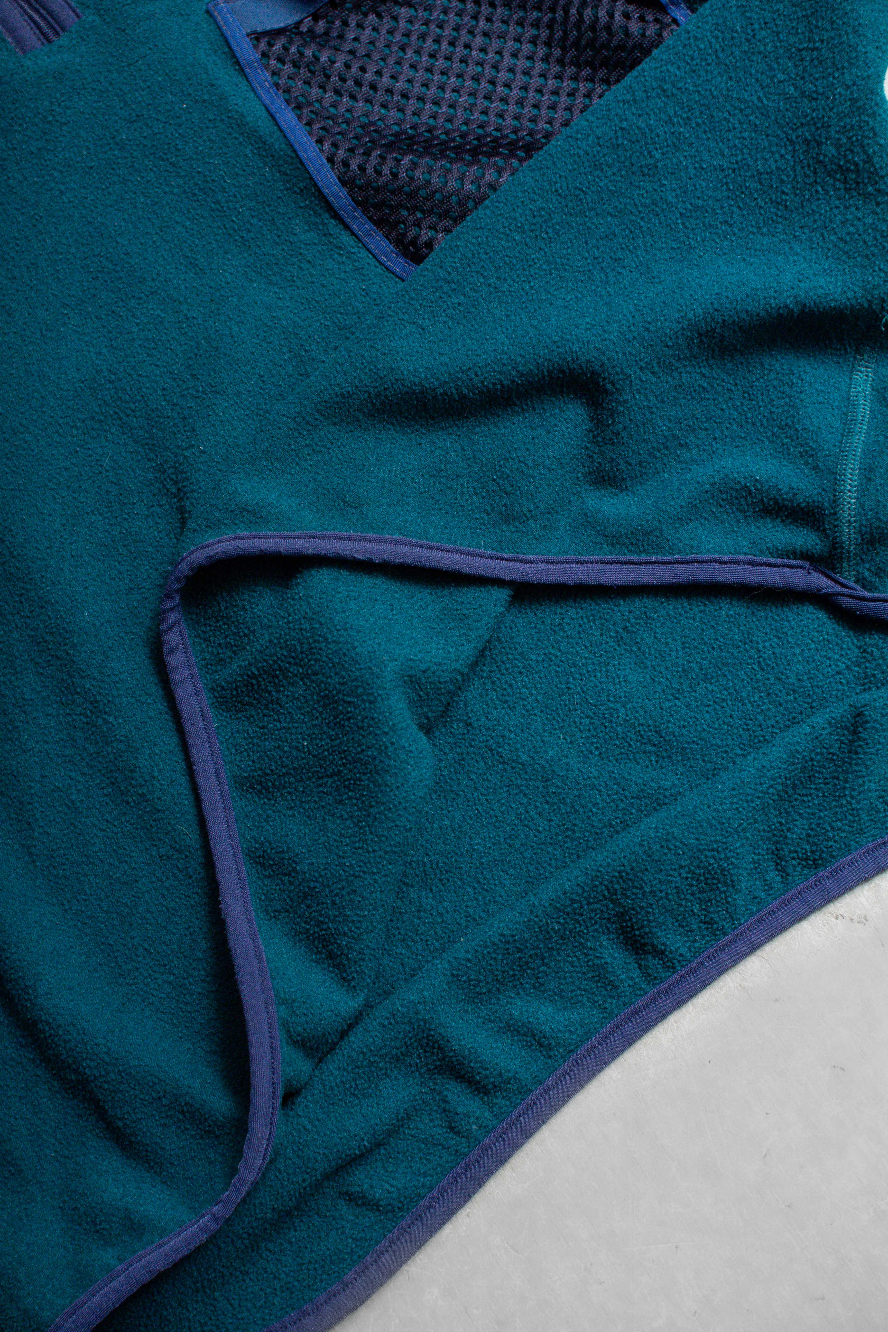 美國製 藍綠色 刷毛 拉鍊 短袖 上衣