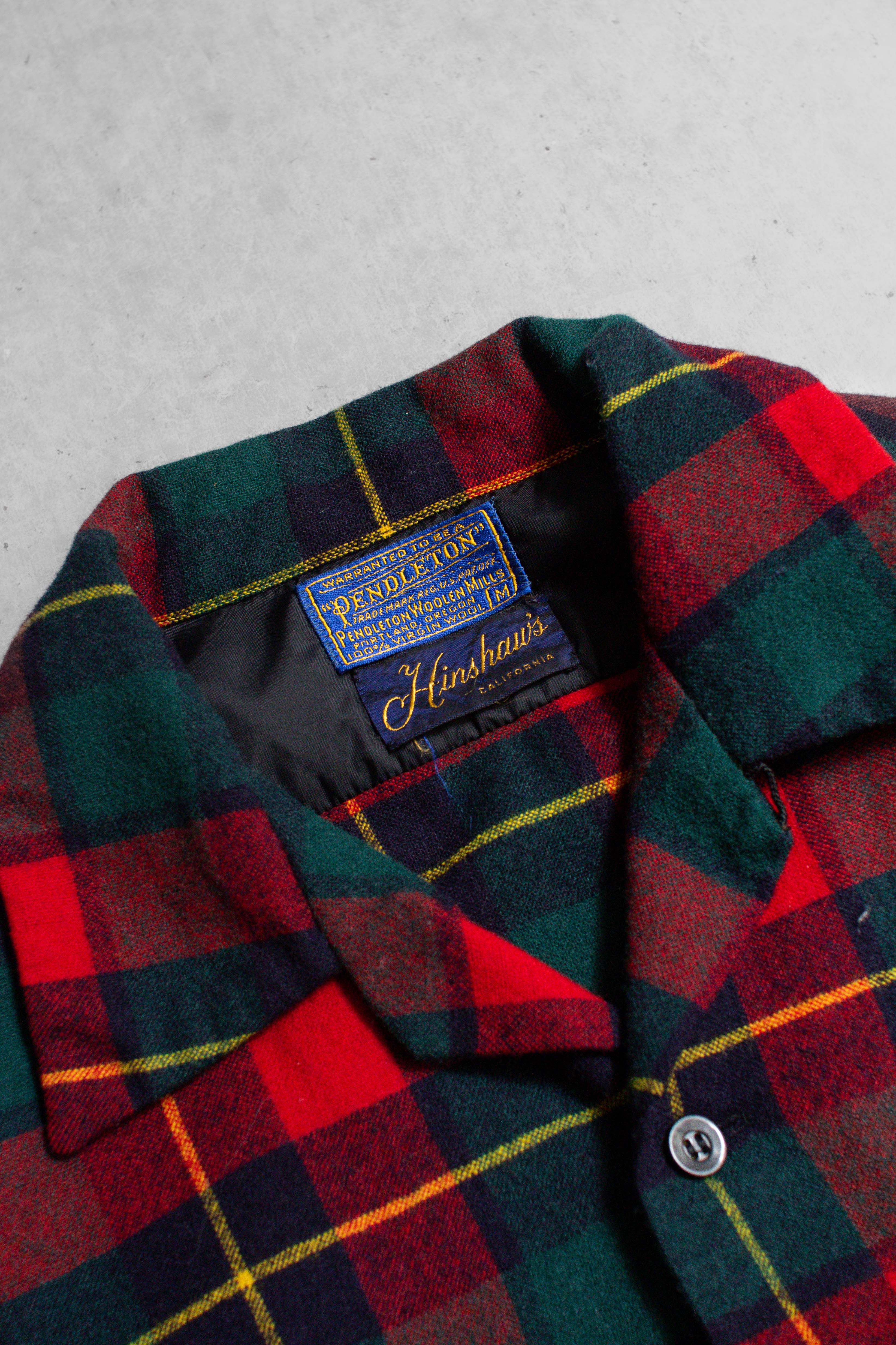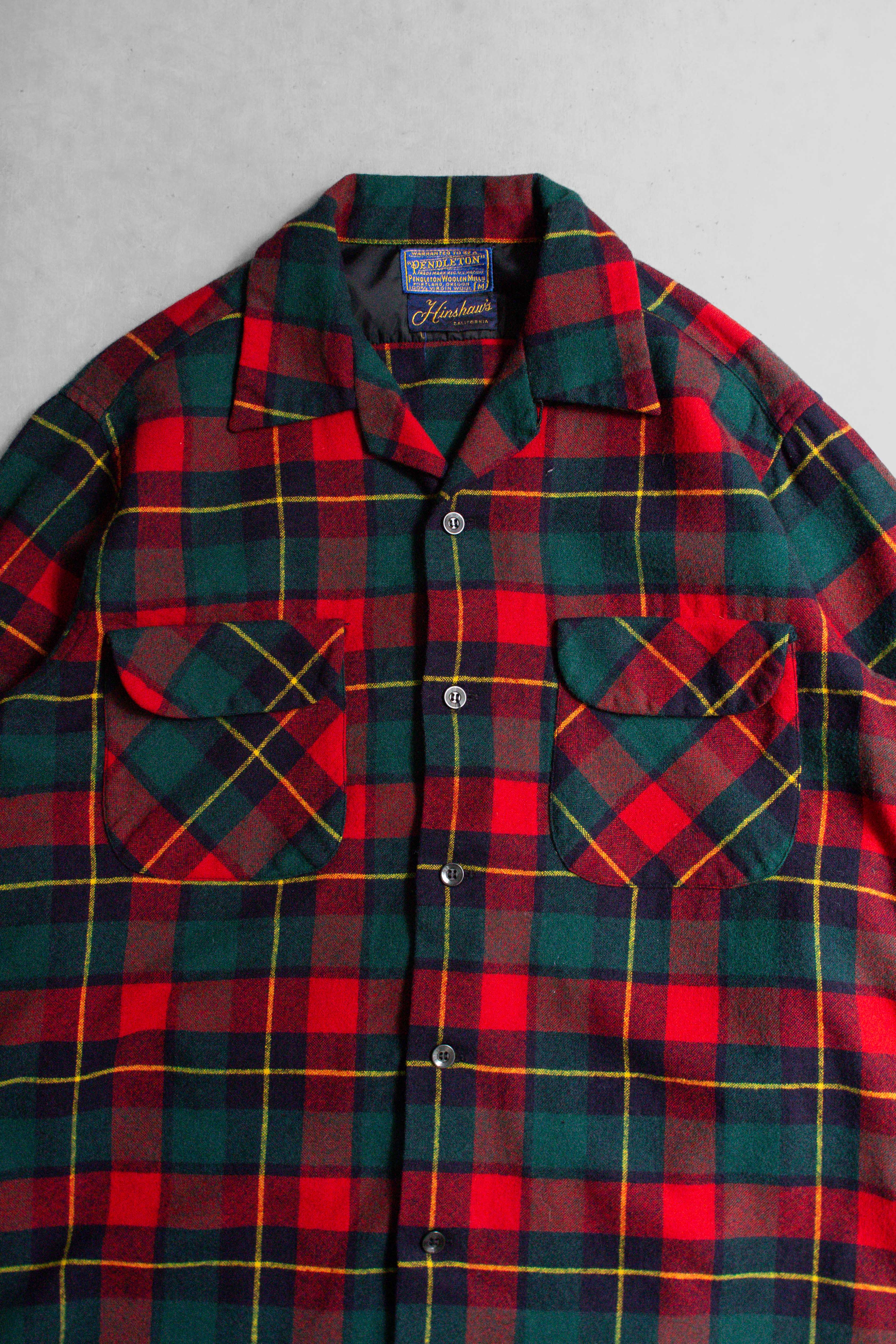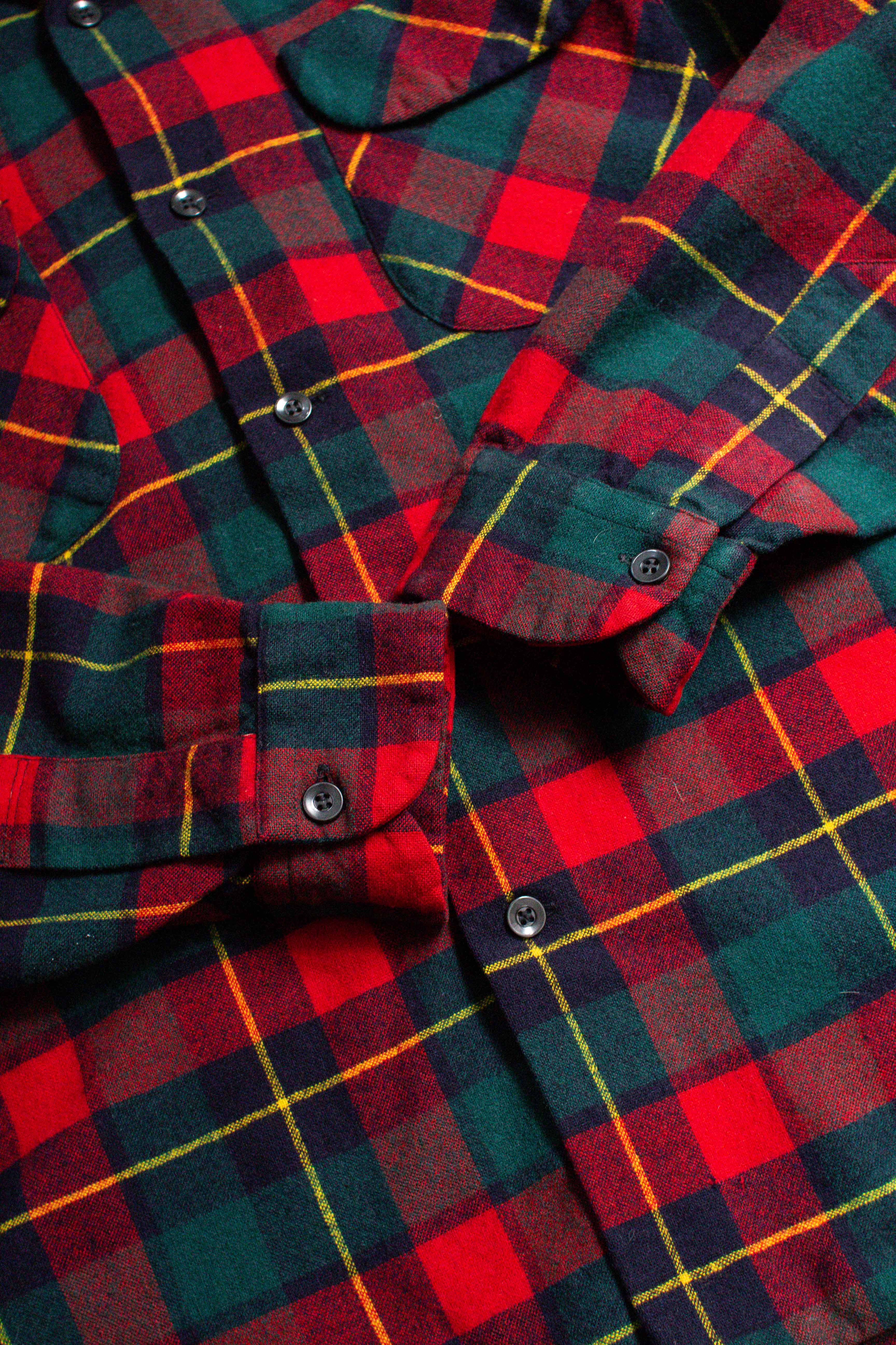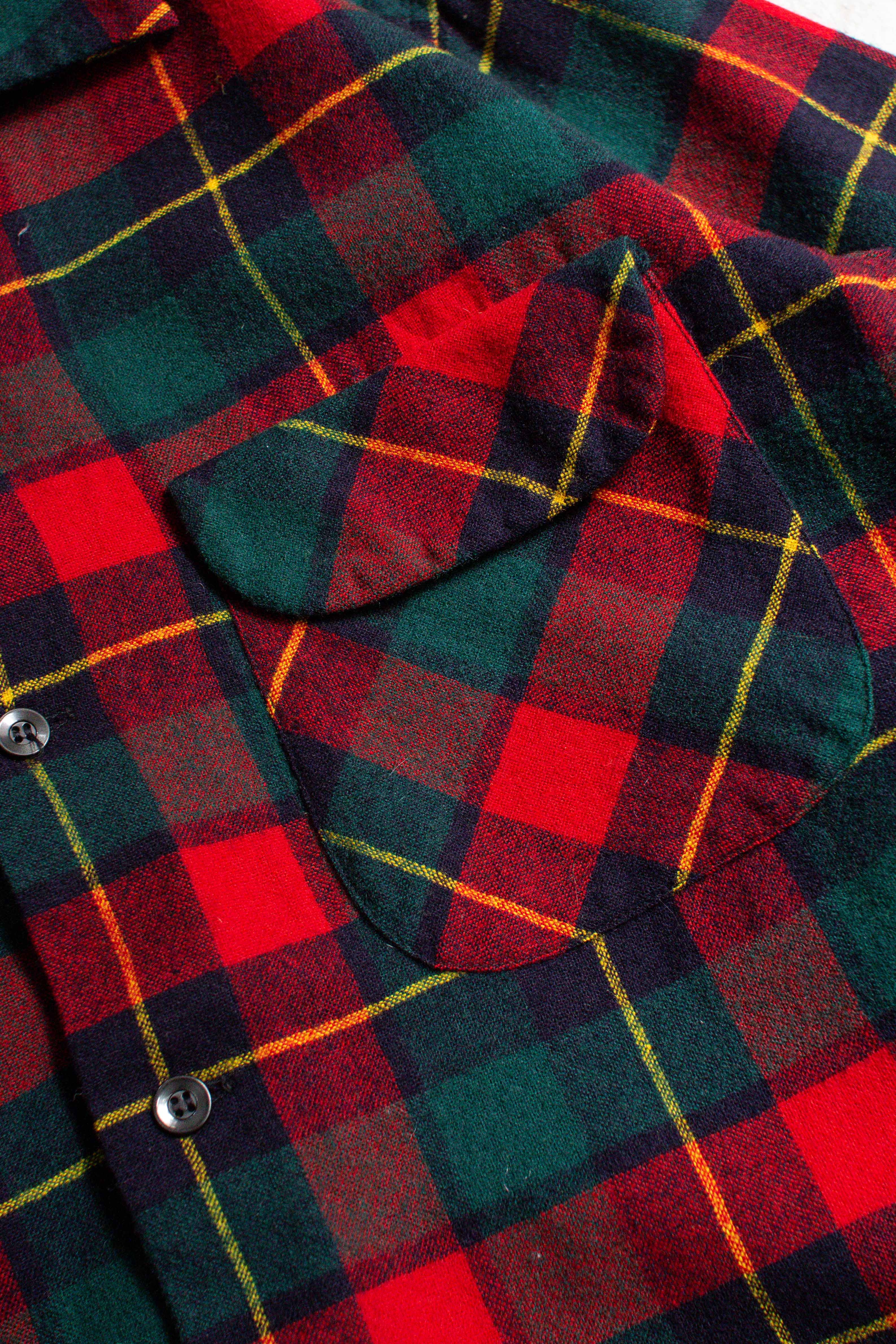 美國製 紅綠 格紋 羊毛 長袖 開領 襯衫